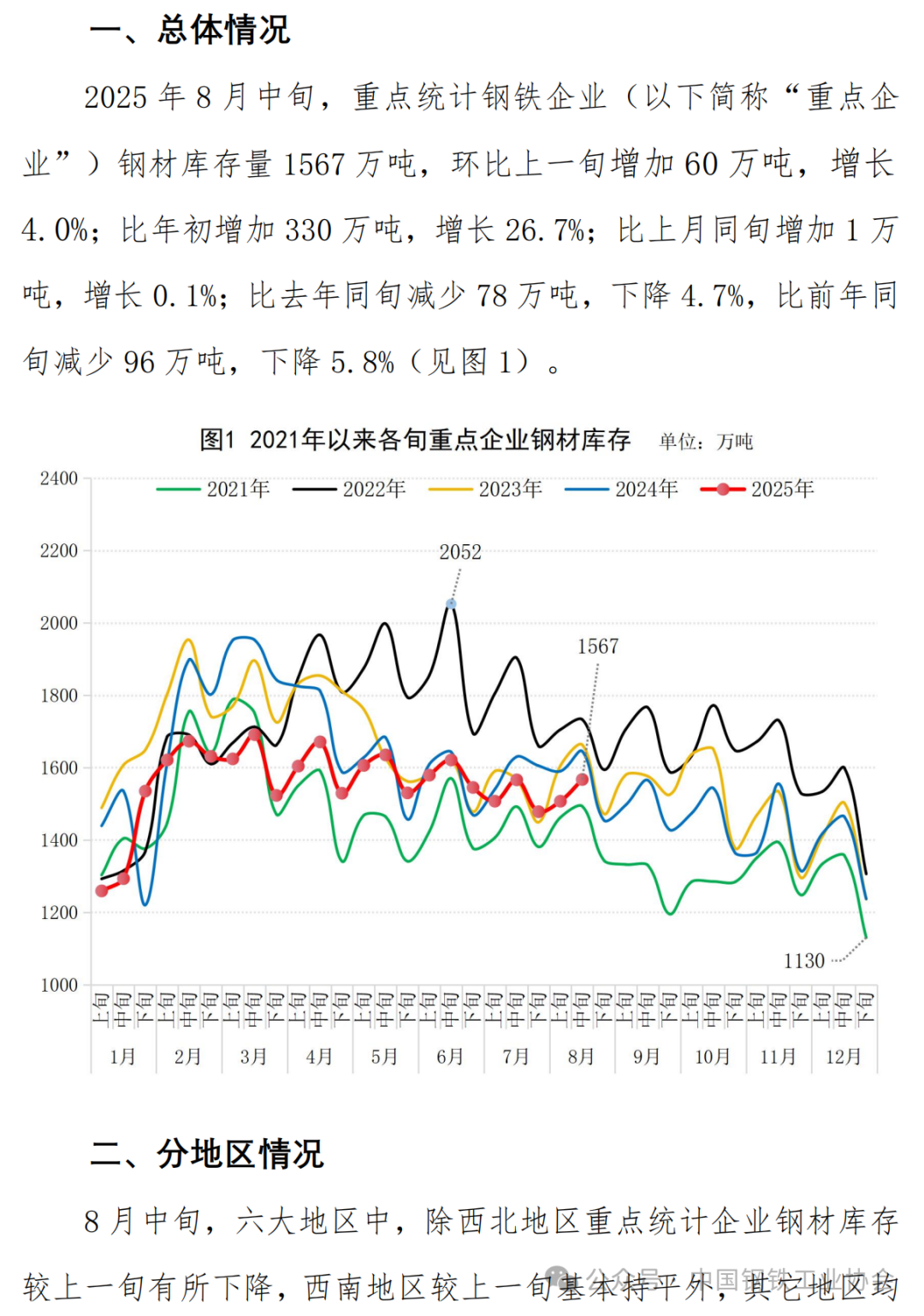 2025年8月中旬重點企業(yè)鋼鐵庫存旬報