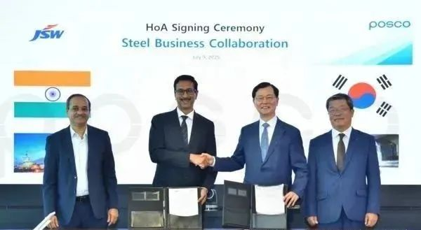 根據(jù)JSW鋼鐵有限公司8月18日發(fā)布的聲明,印度的JSW鋼鐵公司和韓國的浦項制鐵(POSCO)集團已簽署不具約束力的協(xié)議備忘錄(HoA),共同探索在印度新建一座年產能600萬噸的鋼鐵廠。聲明稱,該協(xié)議備忘錄是在雙方2024年10月簽署的諒解備忘錄(MoU)基礎上制定的,概述了擬成立的各占50%股份的合資企業(yè)的大致框架。
