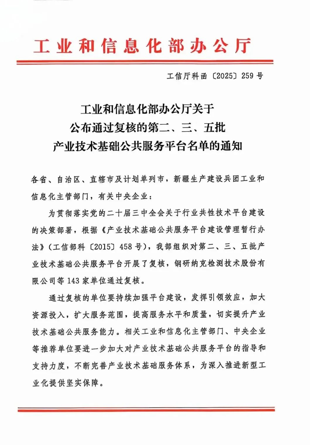 近日,工業(yè)和信息化部辦公廳公布《關(guān)于通過(guò)復(fù)核的第二、三、五批產(chǎn)業(yè)技術(shù)基礎(chǔ)公共服務(wù)平臺(tái)名單的通知》,依托中鋼洛耐院建設(shè)的耐火材料產(chǎn)業(yè)技術(shù)基礎(chǔ)公共服務(wù)平臺(tái)(省部共建)順利通過(guò)2025年復(fù)核。