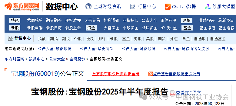 8月28日,寶鋼股份發(fā)布2025年半年度報告。報告顯示,2025年上半年實現(xiàn)利潤總額65.9億元,經(jīng)營業(yè)績保持國內(nèi)行業(yè)第一,實現(xiàn)營業(yè)收入1513.72億元,歸屬于上市公司股東的凈利潤為48.79億元,同比增長7.36%。