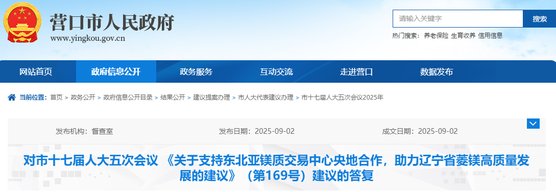 您(你們)提出的《關(guān)于支持東北亞鎂質(zhì)交易中心央地合作,助力遼寧省菱鎂高質(zhì)量發(fā)展的建議》已收悉,現(xiàn)答復(fù)如下: