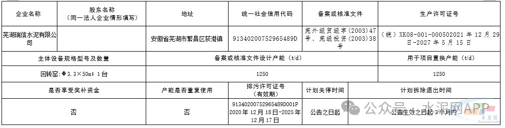 8月29日,安徽省蕪湖市工信局發(fā)布關(guān)于安徽海螺水泥股份有限公司白馬山水泥廠水泥熟料生產(chǎn)線產(chǎn)能置換方案的公示。