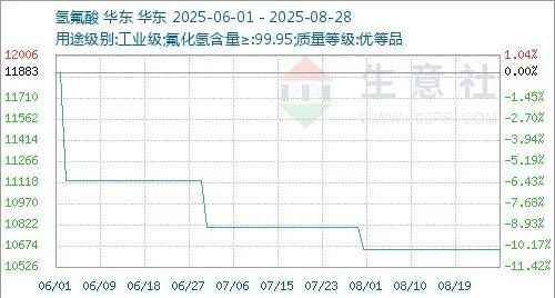國(guó)內(nèi)氫氟酸價(jià)格行情走高,國(guó)內(nèi)氫氟酸各地區(qū)商談主流價(jià)格為10200-10800元/噸。下游氫氟酸部分裝置仍處于停車中,氫氟酸現(xiàn)貨供應(yīng)變化不大,廠家氫氟酸按需采購(gòu)為主,氫氟酸整體開(kāi)工維持5成多,氟化氫企業(yè)維持剛需訂單,氫氟酸企業(yè)處于虧損狀態(tài),9月份氫氟酸大廠定價(jià)上漲,受此消息影響螢石價(jià)格行情跟漲。