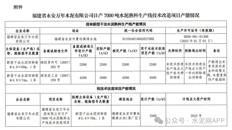 9月5日,福建省工信廳發(fā)布“關于撤銷福建省永安萬年水泥有限公司日產(chǎn)7000噸水泥熟料生產(chǎn)線技術改造項目方案的公告”。