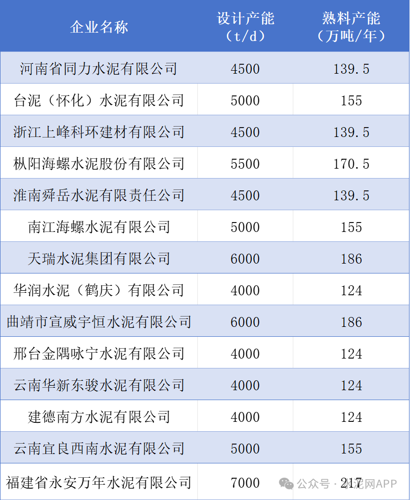 據(jù)統(tǒng)計,今年以來,已有14條水泥熟料生產(chǎn)線建設項目不再推進,合計年產(chǎn)能2139萬噸(按照310天計算),詳情見下表: