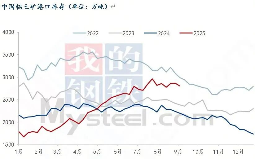 在過去的3個多月里,幾內亞傳統(tǒng)雨季疊加政策性風險導致鋁土礦海漂現(xiàn)貨量逐步減少,與之相應的國內內陸地區(qū)大范圍降雨也影響了國產(chǎn)礦山的開工率。部分內陸地區(qū)氧化鋁廠國產(chǎn)礦庫存吃緊,采購進口一水礦石的意愿增強。而沿海地區(qū)部分氧化鋁廠也存在低溫礦石的補庫需求,詢盤較前期更加活躍,但由于氧化鋁價格下行帶來了壓力,工廠在進行采購談判時壓價情緒相比前期亦有回升。