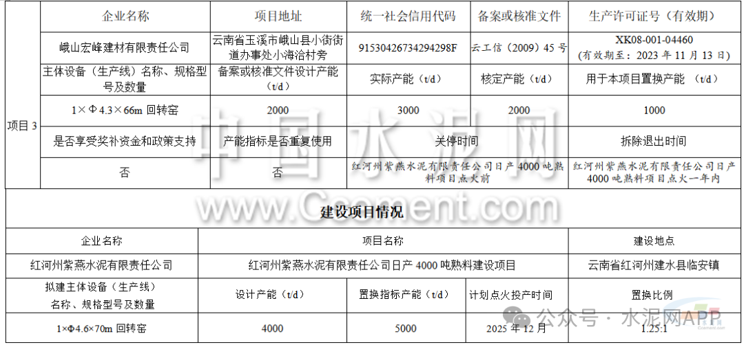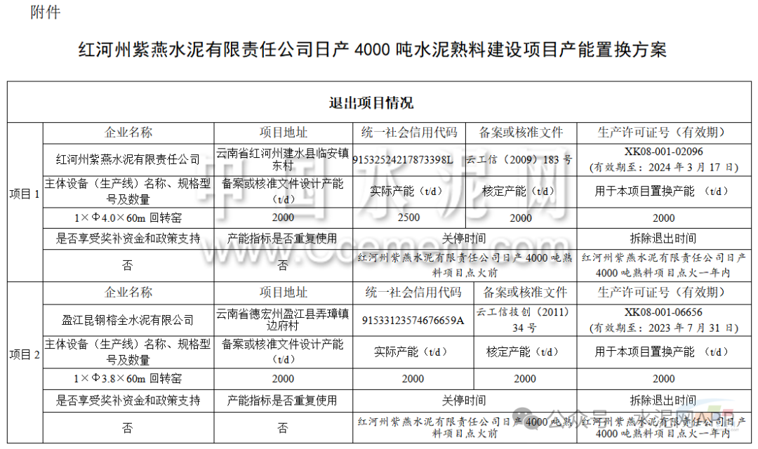 9月11日,云南省工信廳發(fā)布第18號(hào)、第19號(hào)公告。因故未實(shí)施,紅河州紫燕水泥有限責(zé)任公司申請(qǐng)撤銷(xiāo)“紅河州紫燕水泥有限責(zé)任公司日產(chǎn)4000噸水泥熟料建設(shè)項(xiàng)目產(chǎn)能置換方案”。按照原計(jì)劃,該企業(yè)擬建一條4000t/d熟料生產(chǎn)線項(xiàng)目,退出紅河州紫燕水泥有限責(zé)任公司2000t/d、盈江昆鋼榕全水泥有限公司2000t/d、峨山宏峰建材有限責(zé)任公司2000t/d共計(jì)3條生產(chǎn)線。