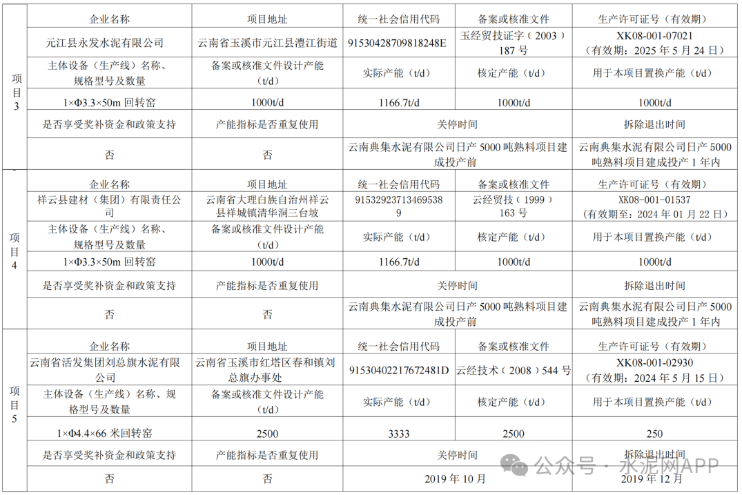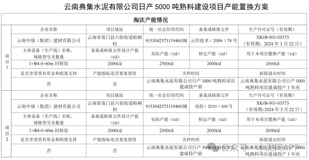 云南典集水泥有限公司申請(qǐng)撤銷(xiāo)“云南典集水泥有限公司日產(chǎn)5000噸熟料建設(shè)項(xiàng)目產(chǎn)能置換方案”。按照原計(jì)劃,該企業(yè)擬建一條5000t/d熟料生產(chǎn)線,退出產(chǎn)能來(lái)自云南中瑞(集團(tuán))建材有限公司2條2000t/d、元江縣永發(fā)水泥有限公司1000t/d、祥云縣建材(集團(tuán))有限責(zé)任公司1000t/d、云南省活發(fā)集團(tuán)劉總旗水泥有限公司2500t/d(用于本項(xiàng)目250t/d)共計(jì)5條生產(chǎn)線。