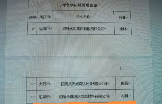 據(jù)山西省工業(yè)和信息化廳官網(wǎng)2025年9月5日公布的“2025年度山西省綠色制造名單”,陽泉金隅通達(dá)高溫材料有限公司榮獲“2025年度山西省綠色供應(yīng)鏈管理企業(yè)”,標(biāo)志著該公司綠色供應(yīng)鏈管理邁上新臺(tái)階,綠色轉(zhuǎn)型發(fā)展取得新成果,為行業(yè)綠色發(fā)展樹立了新標(biāo)桿。