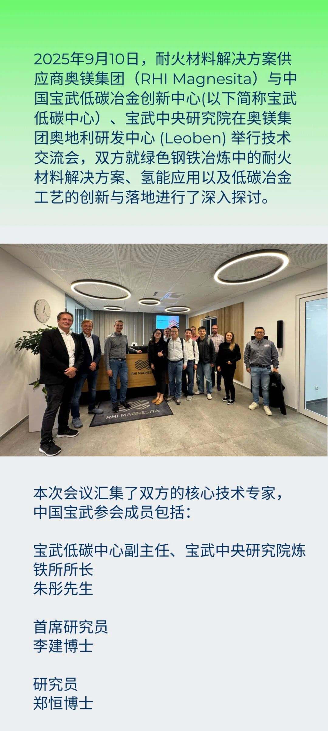 聚焦綠色鋼鐵轉(zhuǎn)型:奧鎂集團與寶武低碳中心、寶武中央研究院舉行技術(shù)交流會,共探低碳未來