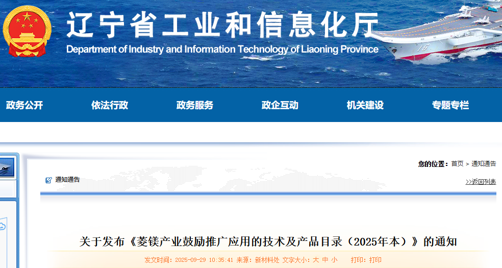 按照《遼寧省人民政府辦公廳關(guān)于推進(jìn)菱鎂行業(yè)高質(zhì)量發(fā)展的實(shí)施意見》(遼政辦發(fā)〔2023〕15號(hào))精神,為持續(xù)搭建技術(shù)交流平臺(tái),推動(dòng)新技術(shù)、新產(chǎn)品成果轉(zhuǎn)化,加快菱鎂行業(yè)發(fā)展形成新質(zhì)生產(chǎn)力,深入推進(jìn)行業(yè)高質(zhì)量發(fā)展,省工業(yè)和信息化廳組織征集已經(jīng)進(jìn)入或接近產(chǎn)業(yè)化應(yīng)用階段的新技術(shù)、新產(chǎn)品,經(jīng)相關(guān)專家論證、廳門戶網(wǎng)站公示后,編制形成《菱鎂產(chǎn)業(yè)鼓勵(lì)推廣應(yīng)用的技術(shù)及產(chǎn)品目錄(2025年本)》,現(xiàn)予發(fā)布。請(qǐng)做好目錄的推廣應(yīng)用和指導(dǎo)。