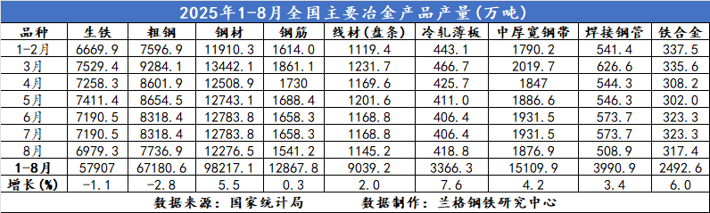 表1 2025年1-8月全國(guó)主要冶金產(chǎn)品產(chǎn)量