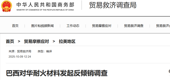 2025年9月30日,巴西外貿(mào)秘書處在官方日報發(fā)布2025年第75號公告,決定應(yīng)巴西協(xié)會Associa??o Brasileira de Fabricantes de Refratários(Abrafar)申請,對進(jìn)口自中國的耐火材料(葡萄牙語:refratários básicos e n?o básicos)啟動反傾銷調(diào)查。涉案產(chǎn)品的南共市稅號為6815.91.10、6815.91.90、6815.99.19、6815.99.90、6902.10.18、6902.10.19、6902.10.90、6902.20.10、6902.20.91、6902.20.99和6902.90.90。本案傾銷調(diào)查期為2023年10月至2024年9月,損害分析期為2019年10月至2024年9月。