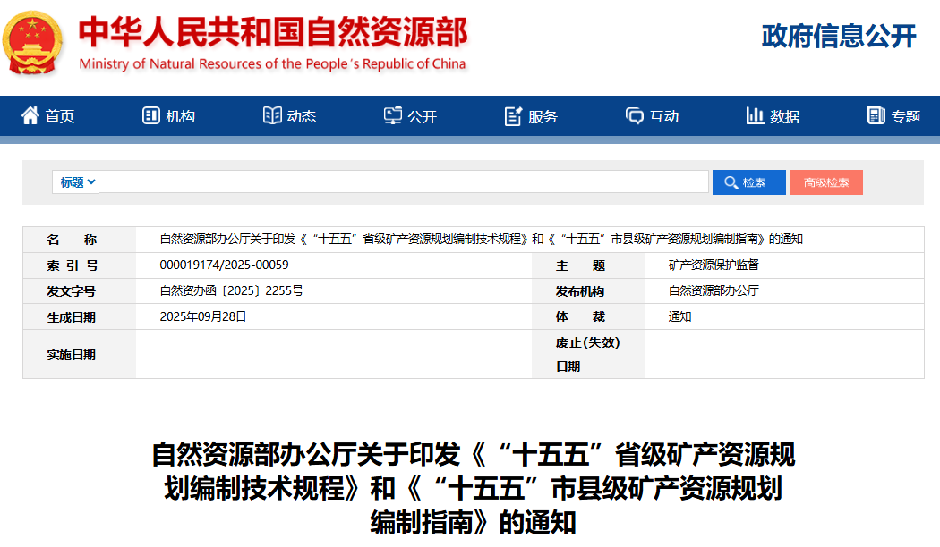 為加強(qiáng)部省銜接,指導(dǎo)做好省市縣各級(jí)礦產(chǎn)資源規(guī)劃工作,依據(jù)《礦產(chǎn)資源法》和《礦產(chǎn)資源規(guī)劃編制實(shí)施辦法》,按照《自然資源部辦公廳關(guān)于開展“十四五”礦產(chǎn)資源規(guī)劃總結(jié)評(píng)估及“十五五”規(guī)劃編制工作的通知》(自然資辦發(fā)〔2025〕19號(hào))要求,部研究制定了《“十五五”省級(jí)礦產(chǎn)資源規(guī)劃編制技術(shù)規(guī)程》和《“十五五”市縣級(jí)礦產(chǎn)資源規(guī)劃編制指南》,現(xiàn)印發(fā)給你們,請(qǐng)參照?qǐng)?zhí)行。