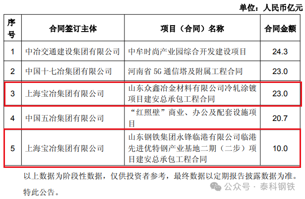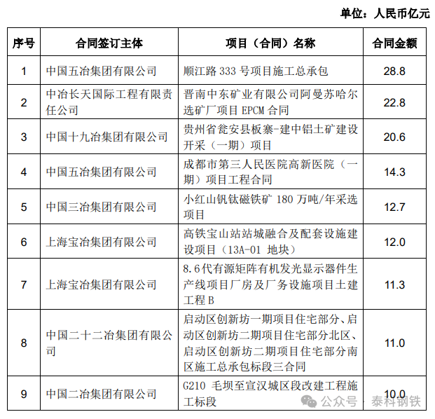 冶金領(lǐng)域,2025年9月,上海寶冶集團有限公司新簽山東眾鑫冶金材料有限公司冷軋涂鍍項目建安總承包工程合同,合同金額23億元;上海寶冶集團有限公司新簽山東鋼鐵集團永鋒臨港有限公司臨港先進優(yōu)特鋼產(chǎn)業(yè)基地二期(二步)項目建安總承包工程合同,合同金額11.8億元;此外,上海寶冶集團有限公司簽約山西通才工貿(mào)有限公司年產(chǎn)100萬噸能源新材料精品鋼管生產(chǎn)線建設(shè)項目EPC總承包工程合同 ,合同金額11.8億元;中國五冶集團有限公司、中冶焦耐工程技術(shù)有限公司簽新和縣星河實業(yè)有限責任公司160萬噸/年焦化及尾氣綜合利用項目(EPC),合同金額79億元。中國一冶集團有限公司、中冶建筑研究總院有限公司簽約三門峽高新區(qū)銅基新材料產(chǎn)業(yè)園EPC總承包項目,合同額18.3億元。中冶焦耐工程技術(shù)有限公司簽約哈薩克斯坦 Qarmet No.8&9 焦化項目供貨合同,合同金額12.7億元。