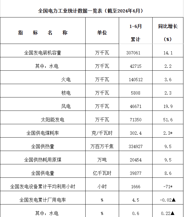 7月20日,國家能源局發(fā)布1-6月份全國電力工業(yè)統(tǒng)計(jì)數(shù)據(jù)。