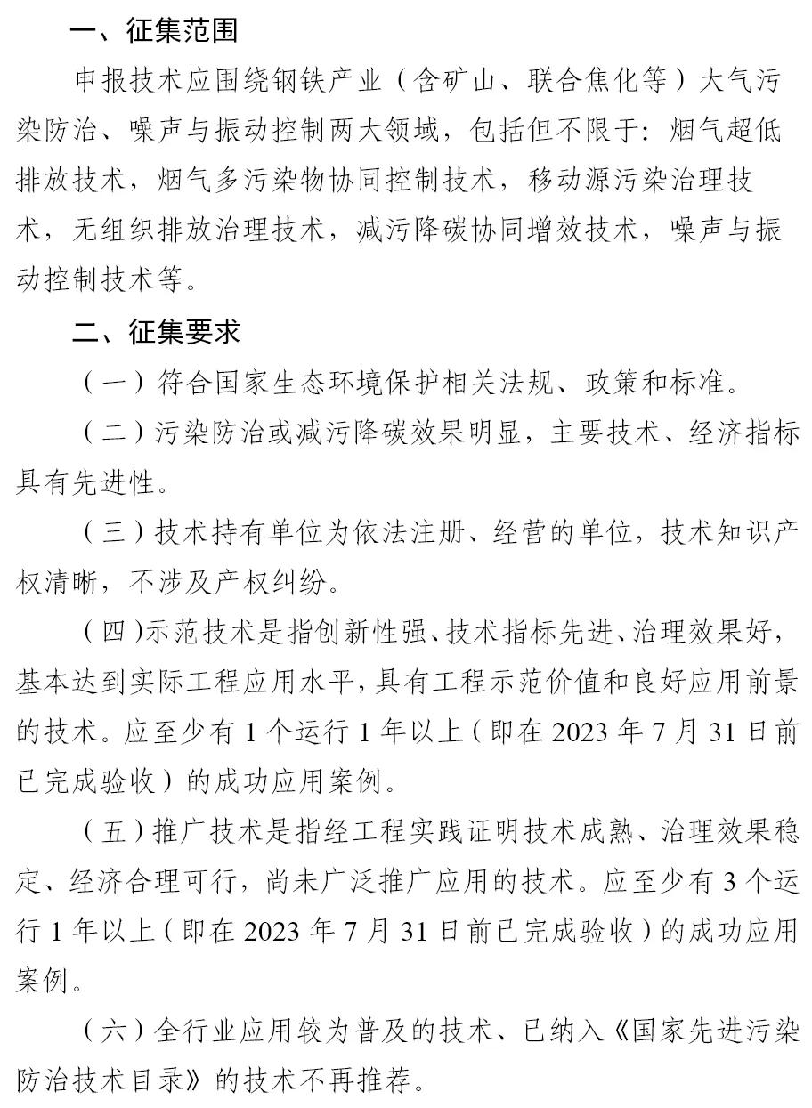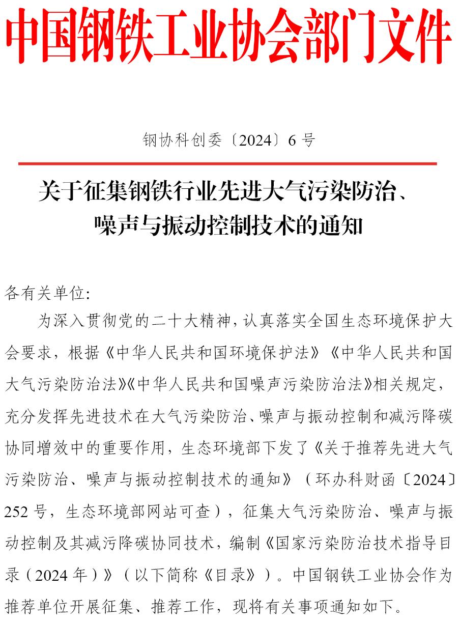 關(guān)于征集鋼鐵行業(yè)先進(jìn)大氣污染防治、噪聲與振動(dòng)控制技術(shù)的通知?