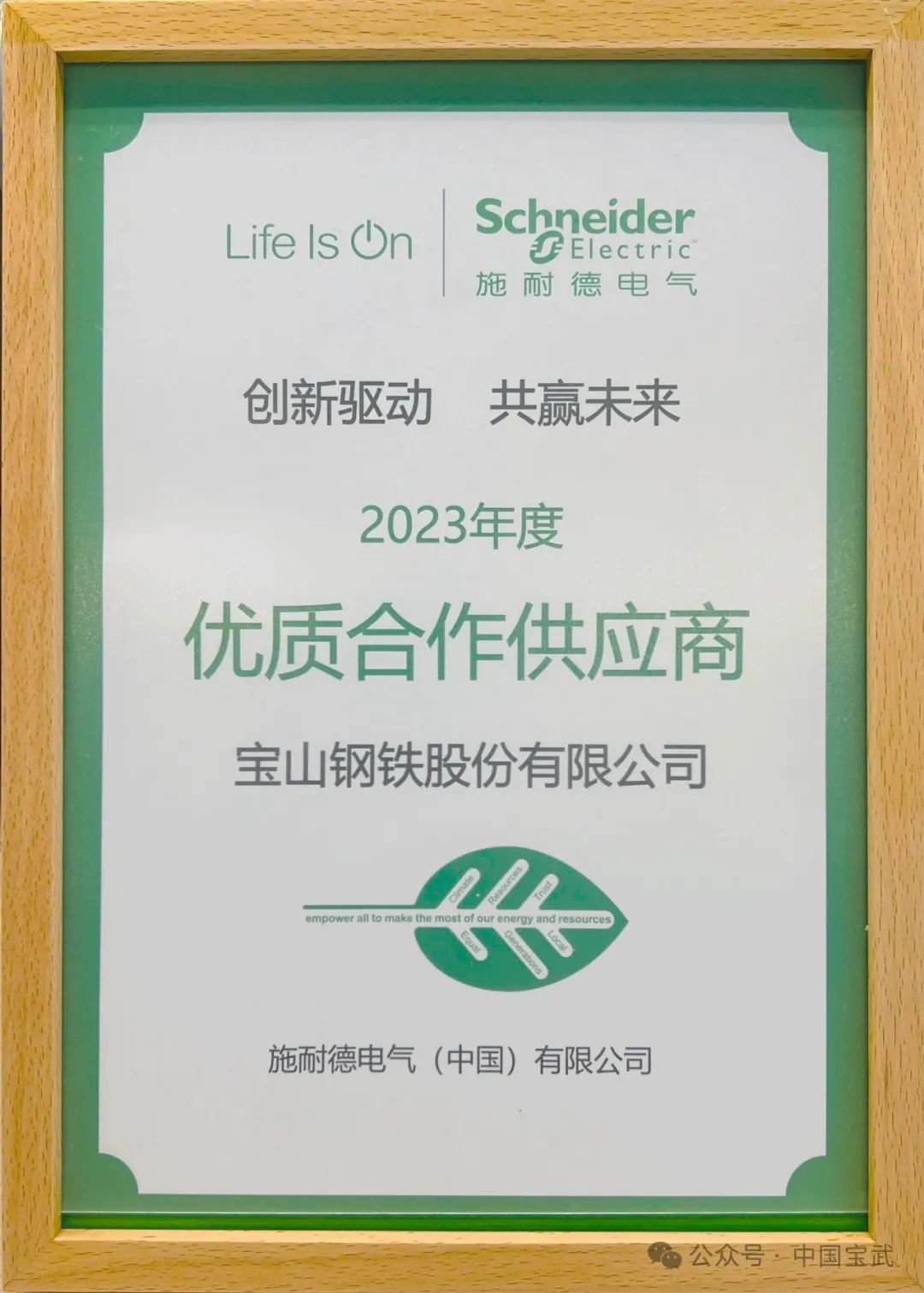 施耐德電氣作為全球領(lǐng)先的能源管理和自動(dòng)化解決方案提供商,一直以來都對供應(yīng)商的選擇有著嚴(yán)格的標(biāo)準(zhǔn)和要求。寶鋼股份憑借卓越的產(chǎn)品質(zhì)量、高效的供應(yīng)鏈管理和持續(xù)的技術(shù)創(chuàng)新,成功獲得了施耐德電氣的青睞,成為其重要的合作伙伴之一。在施耐德電氣(中國)2024年創(chuàng)新峰會(huì)及中國供應(yīng)商大會(huì)上,寶鋼股份榮獲了“2023年度優(yōu)質(zhì)合作供應(yīng)商”的殊榮。