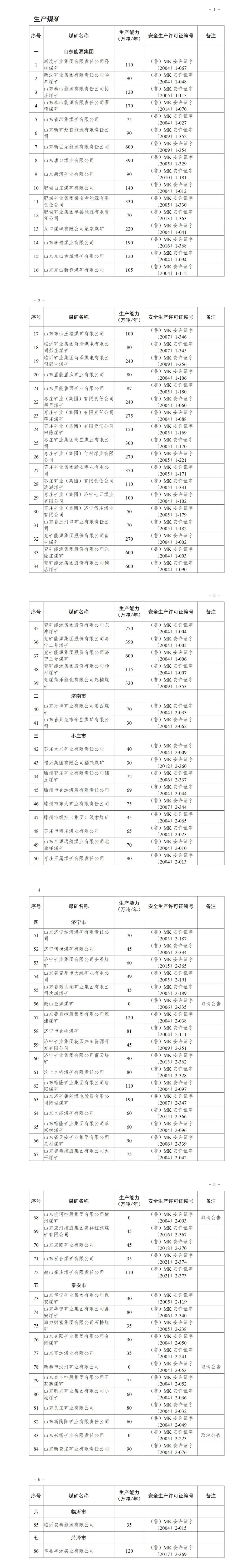 附件:山東省煤礦生產(chǎn)能力情況表