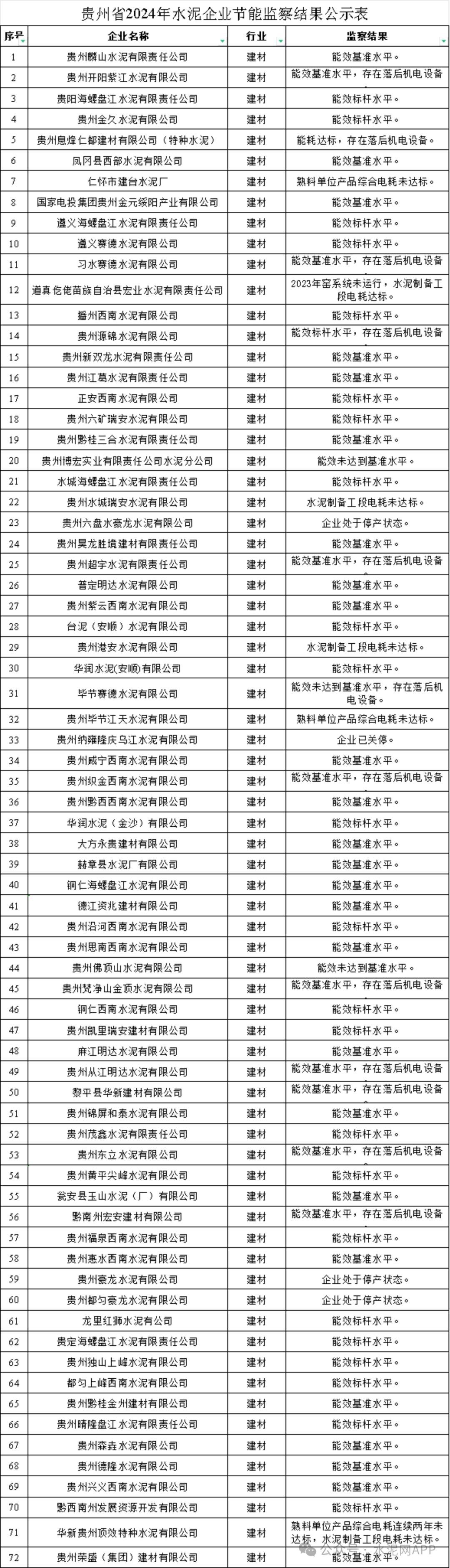 8月5日,貴州省工信廳發(fā)布“關于貴州省2024年水泥企業(yè)節(jié)能監(jiān)察結果的公示”。