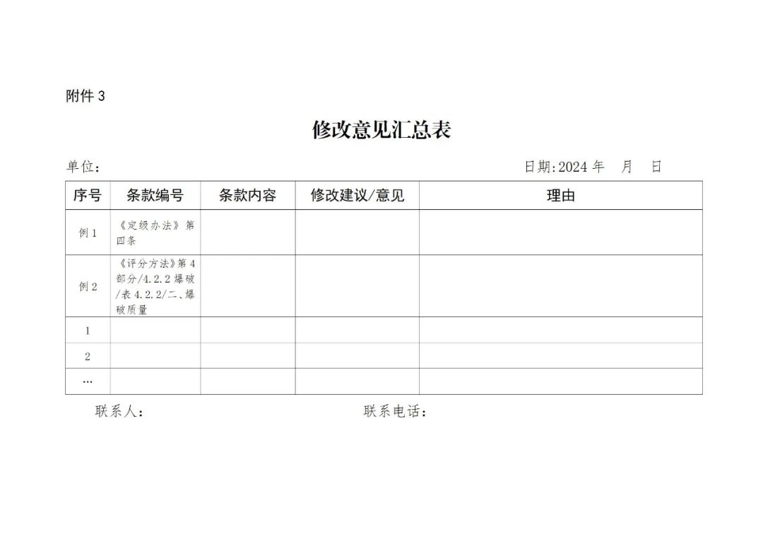 為進(jìn)一步加強(qiáng)和規(guī)范煤礦安全生產(chǎn)標(biāo)準(zhǔn)化建設(shè)工作,國家礦山安全監(jiān)察局組織修訂形成了《煤礦安全生產(chǎn)標(biāo)準(zhǔn)化管理體系考核定級辦法(征求意見稿)》(以下簡稱《定級辦法》,附件1)和《煤礦安全生產(chǎn)標(biāo)準(zhǔn)化管理體系基本要求及評分方法(征求意見稿)》(以下簡稱《評分方法》,附件2),現(xiàn)向社會公開征求意見,反饋截止時間為2024年8月24日。反饋意見請?zhí)顚憽缎薷囊庖妳R總表》(附件3),并發(fā)送至電子郵箱jcc4750@sina.com。
