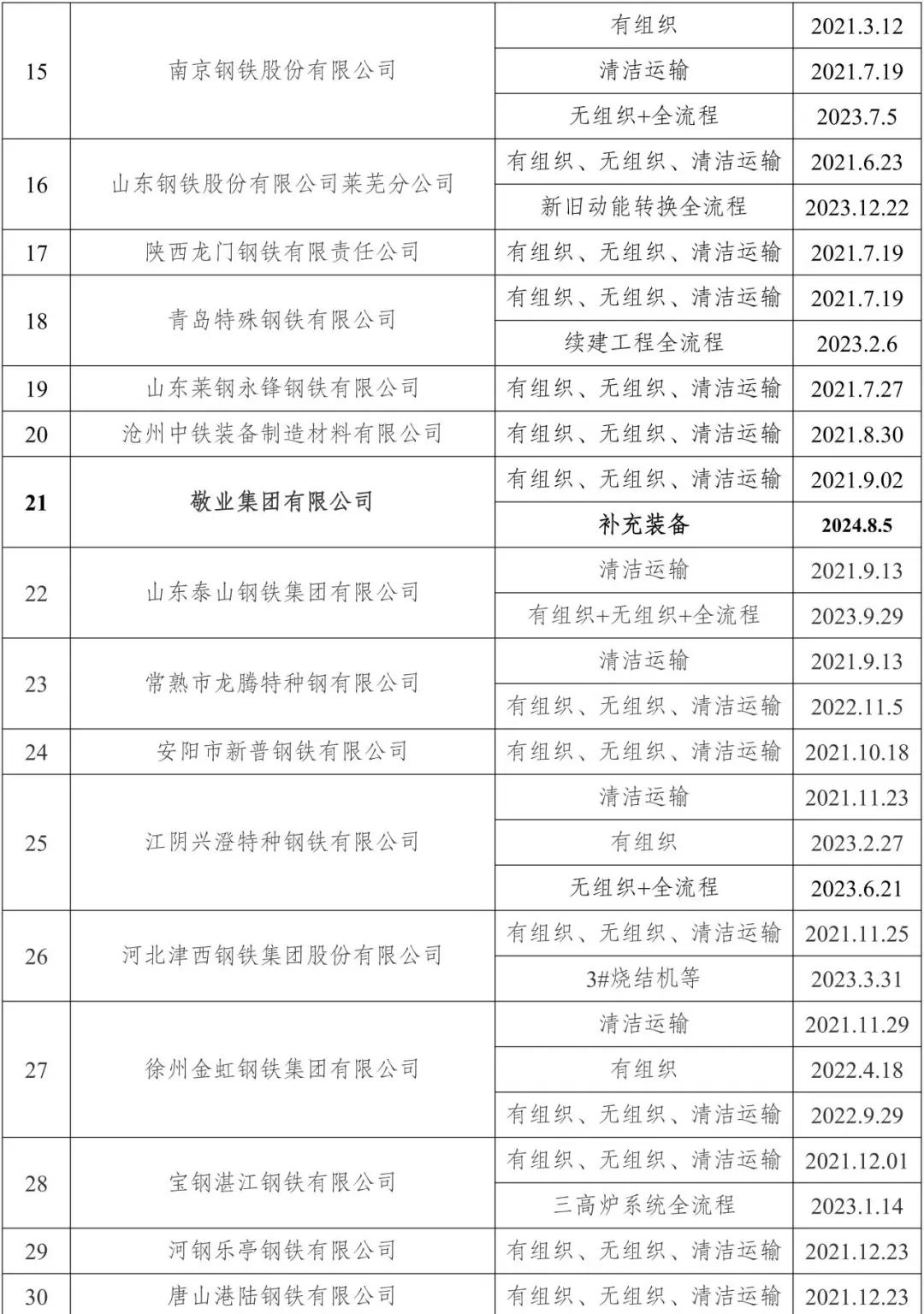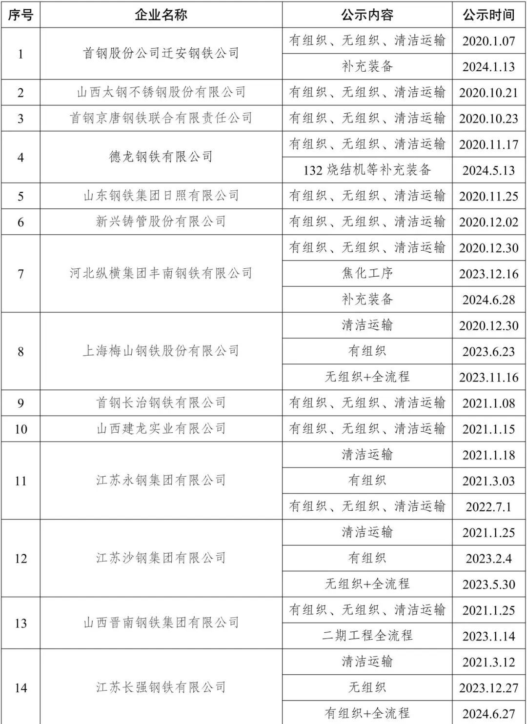 自2020年8月起,中國鋼鐵工業(yè)協(xié)會(huì)開展了鋼鐵企業(yè)超低排放改造和評(píng)估監(jiān)測(cè)進(jìn)展情況公示工作。截至目前,已有144家企業(yè)在鋼協(xié)網(wǎng)站進(jìn)行公示。已公示企業(yè)名單匯總及各企業(yè)公示內(nèi)容整理如下:
