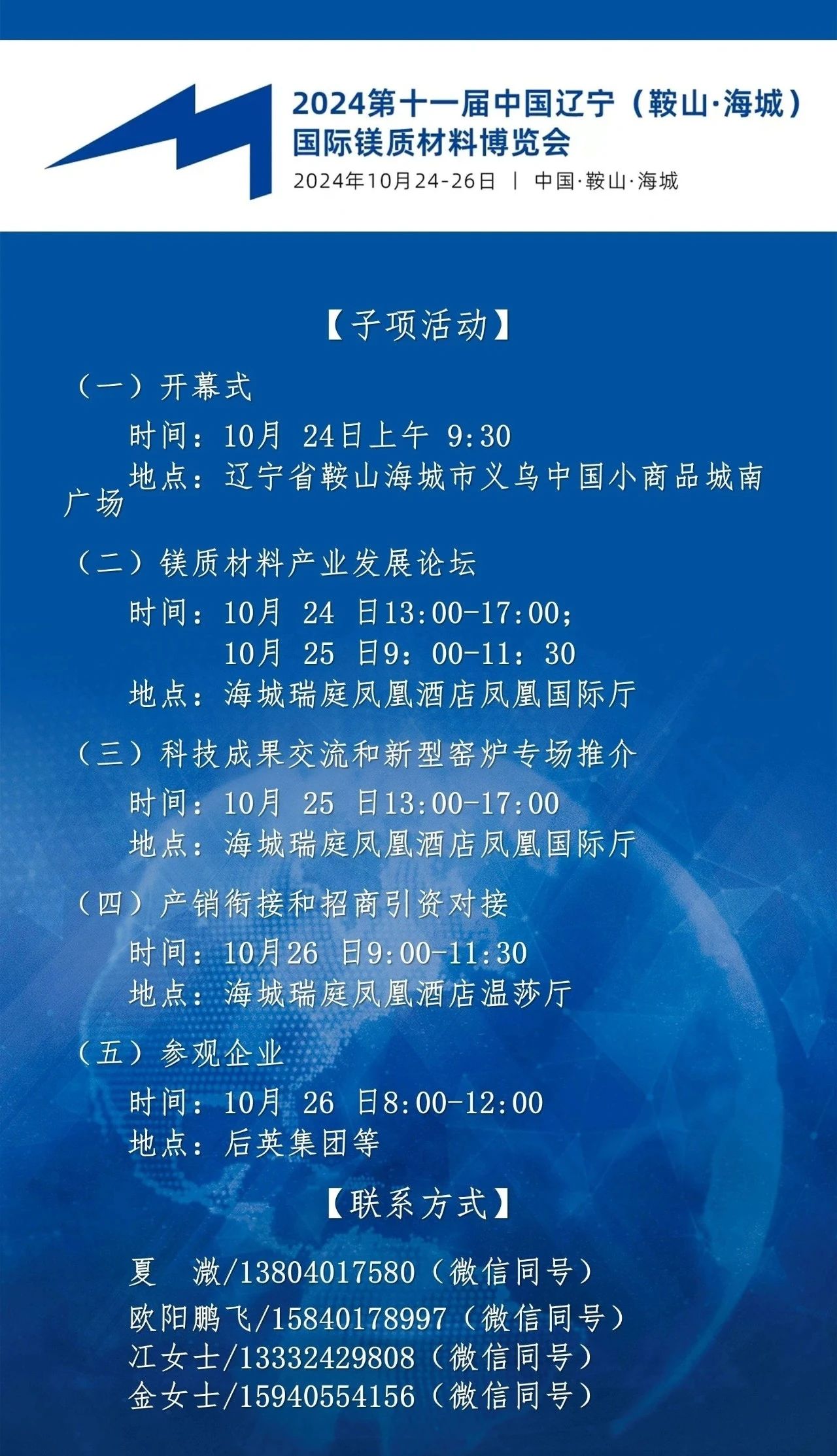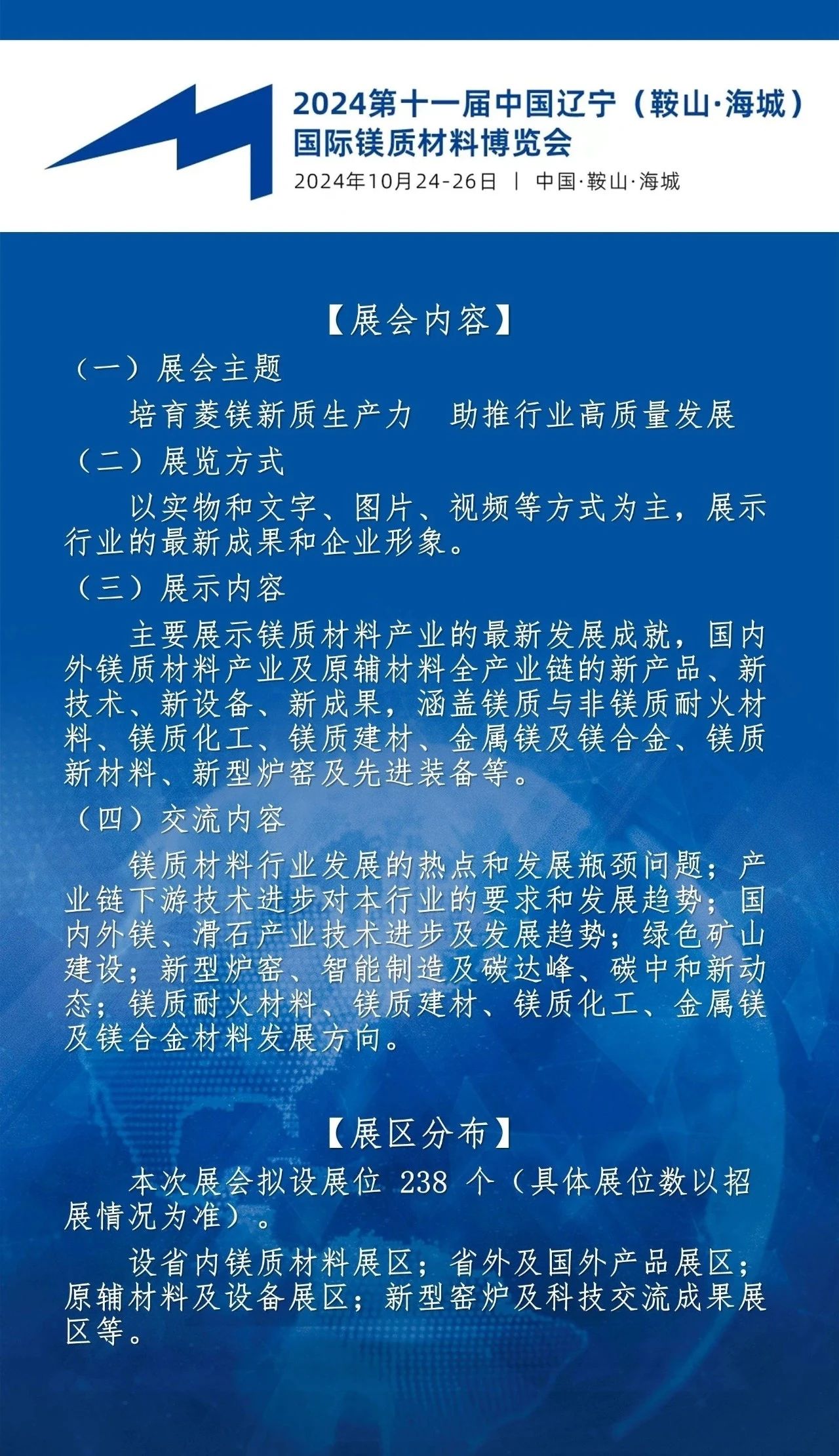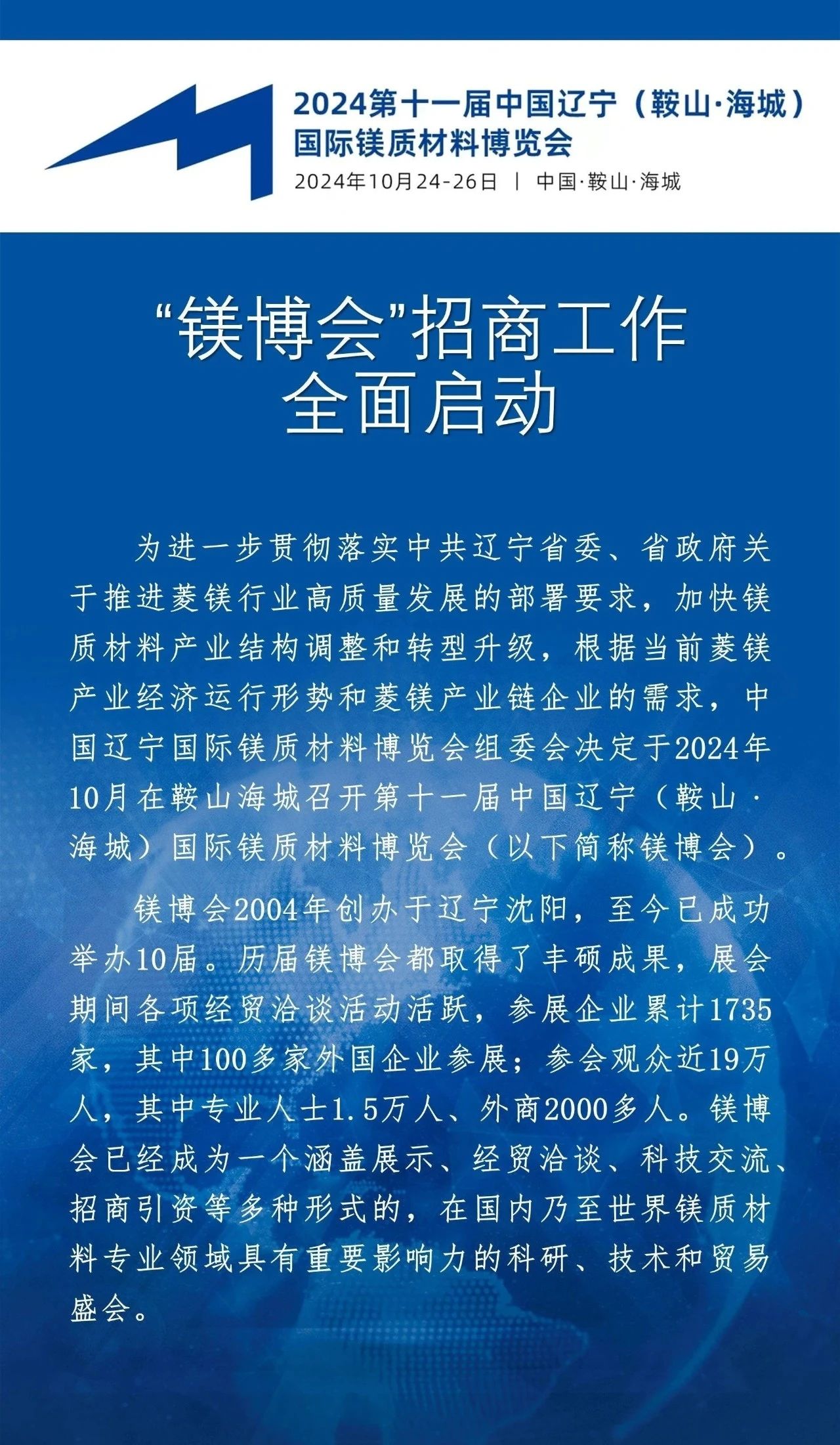 2024第十一屆中國遼寧(鞍山﹒海城)國際鎂質(zhì)材料博覽會(huì)招商工作全面啟動(dòng)?