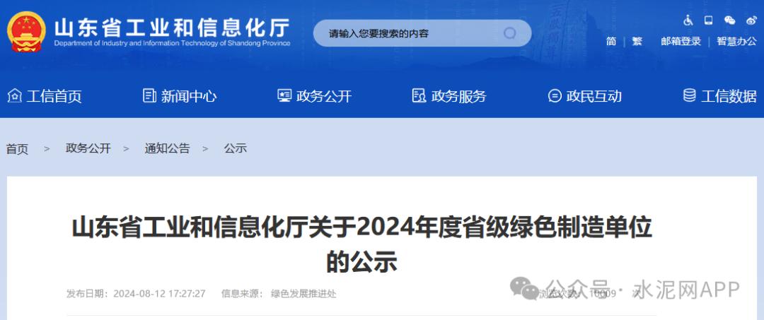 8月12日,山東省工信廳發(fā)布“關(guān)于2024年度省級(jí)綠色制造單位的公示”。
