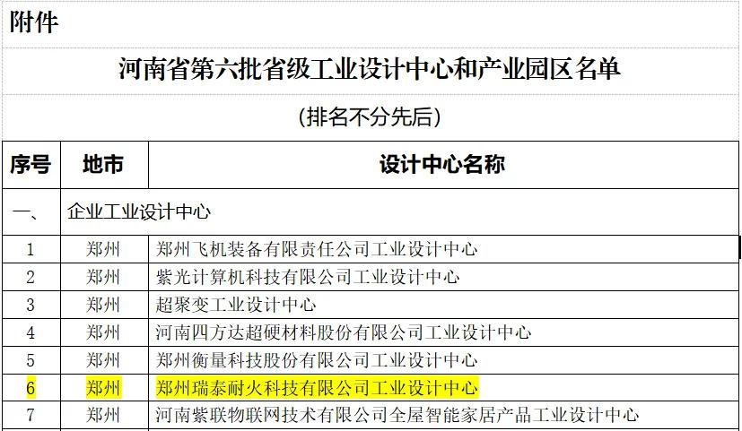近日,河南省工業(yè)和信息化廳公布了“關于擬認定河南省第六批省級工業(yè)設計中心名單的公示”,經推薦、評審、公示等程序,鄭州瑞泰耐火科技有限公司工業(yè)設計中心正式獲批為河南省省級工業(yè)設計中心。