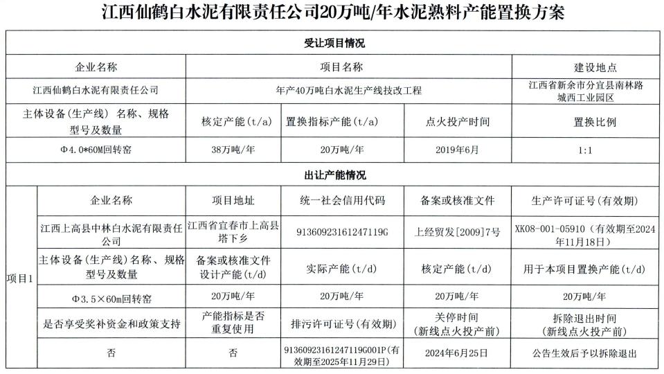 8月15日,江西省工信廳發(fā)布關(guān)于江西仙鶴白水泥有限責(zé)任公司水泥熟料產(chǎn)能置換方案的公示。