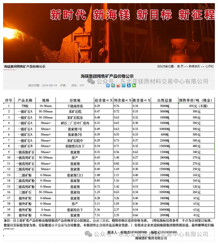 海鎂集團(tuán)預(yù)售礦產(chǎn)品價(jià)格公示