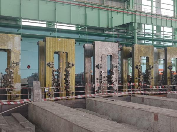 該項目酸軋聯(lián)合機組中的軋機為五機架連軋機組,軋機機型為五機架六輥串列式冷連軋機,位于酸軋跨(1A-1B)142~143線間。連軋機機架共10片,單片機架(牌坊)重約為65噸。
