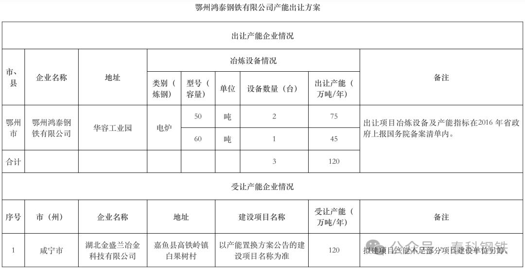 附件:鄂州鴻泰鋼鐵有限公司產(chǎn)能出讓方案