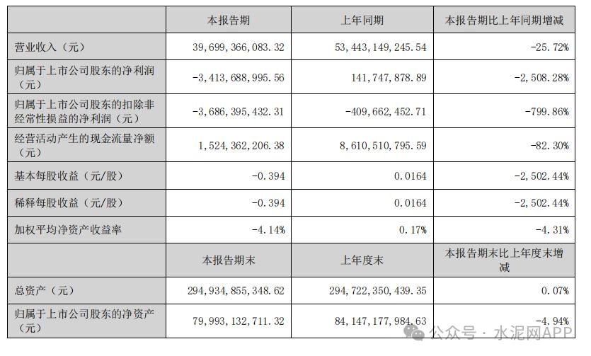 天山股份8月26日晚間發(fā)布2024年半年度報告,公司上半年實現(xiàn)營業(yè)收入396.99億元,同比下降25.72%;凈虧損34.14億元,同比盈轉(zhuǎn)虧;基本每股收益-0.394元。