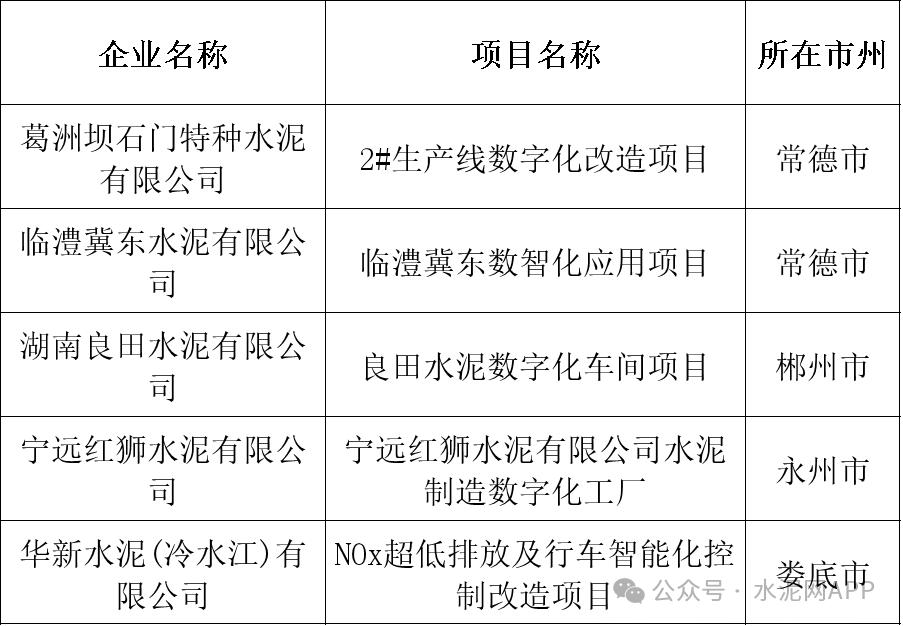 其中,葛洲壩石門特種水泥有限公司、臨澧冀東水泥有限公司、湖南良田水泥有限公司、寧遠(yuǎn)紅獅水泥有限公司、華新水泥(冷水江)有限公司五家水泥企業(yè)改造項目入選。