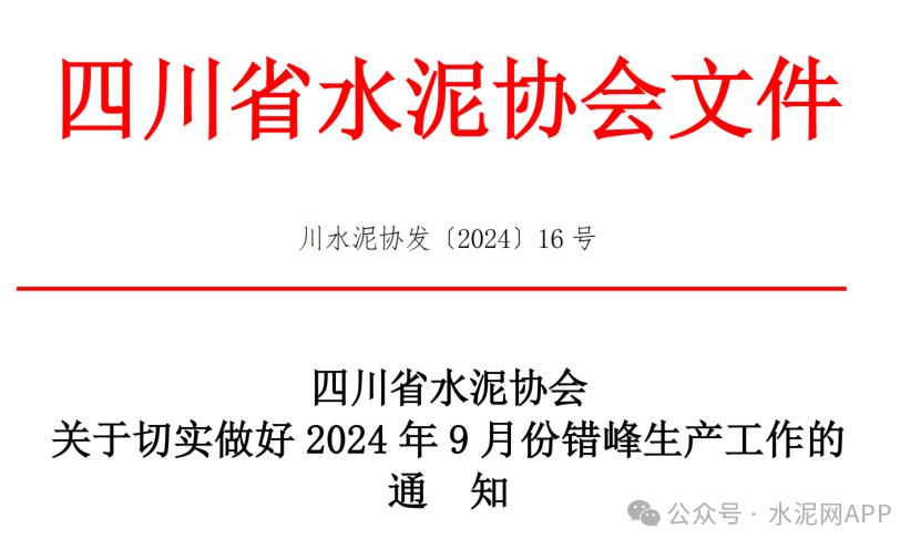 近日,四川省水泥協(xié)會(huì)發(fā)布《關(guān)于切實(shí)做好 2024 年 9 月份錯(cuò)峰生產(chǎn)工作的通知 》。