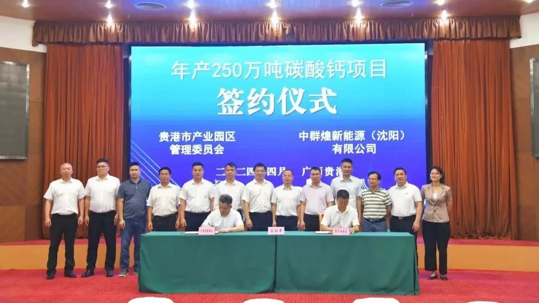 4月25日下午,貴港高新區(qū)管委會與中群煌新能源(沈陽)有限公司在市區(qū)舉行年產(chǎn)250萬噸碳酸鈣項目簽約儀式。