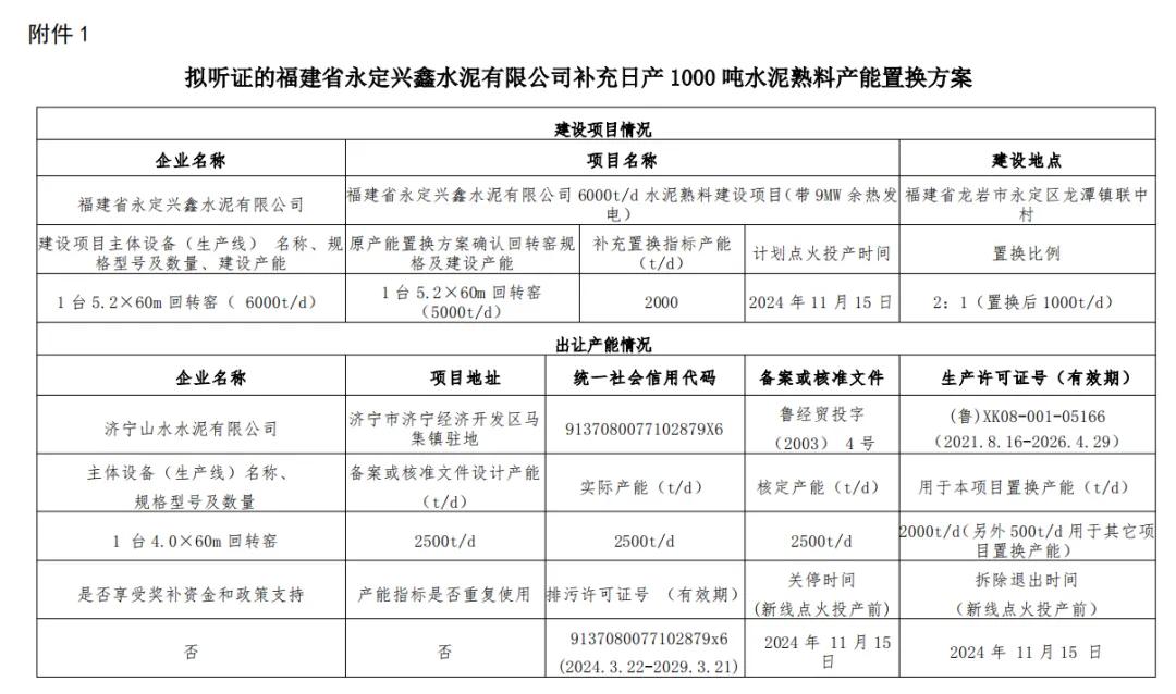 9月13日,福建省工信廳發(fā)布《關(guān)于組織召開(kāi)福建省永定興鑫水泥有限公司補(bǔ)充日產(chǎn)1000噸水泥熟料產(chǎn)能置換方案聽(tīng)證會(huì)的公告》稱, 為貫徹落實(shí)《工業(yè)和信息化部關(guān)于印發(fā)水泥玻璃行業(yè)產(chǎn)能置換實(shí)施辦法的通知》(工信部原〔2021〕80號(hào)),福建省工業(yè)和信息化廳委托中國(guó)水泥協(xié)會(huì),擬組織召開(kāi)福建省永定興鑫水泥有限公司補(bǔ)充日產(chǎn)1000噸水泥熟料產(chǎn)能置換方案聽(tīng)證會(huì)。