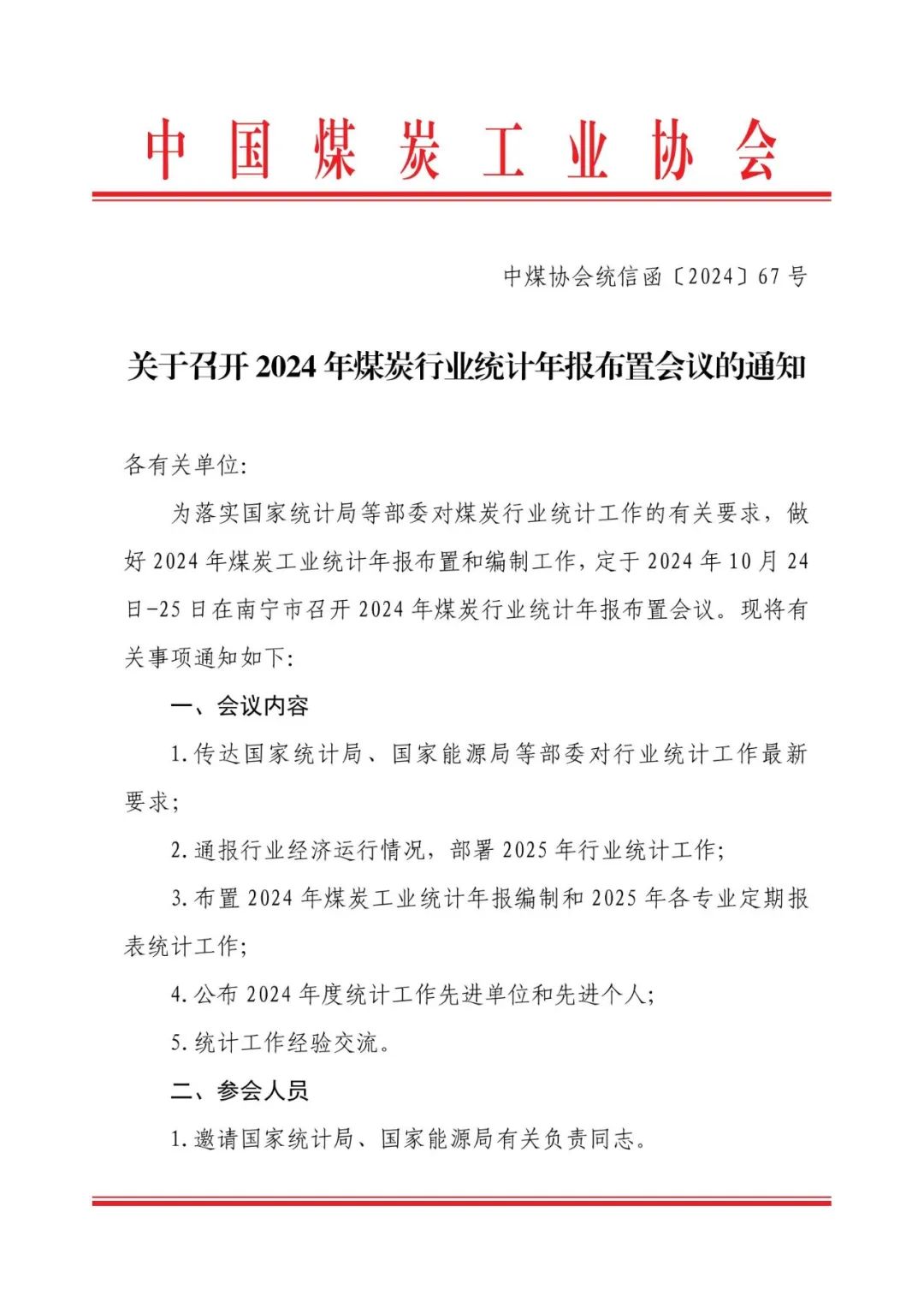 關于召開2024年煤炭行業(yè)統(tǒng)計年報布置會議的通知