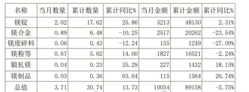 2024年1-8月中國各類鎂產(chǎn)品出口統(tǒng)計(jì)情況 (單位:萬噸、萬美元)