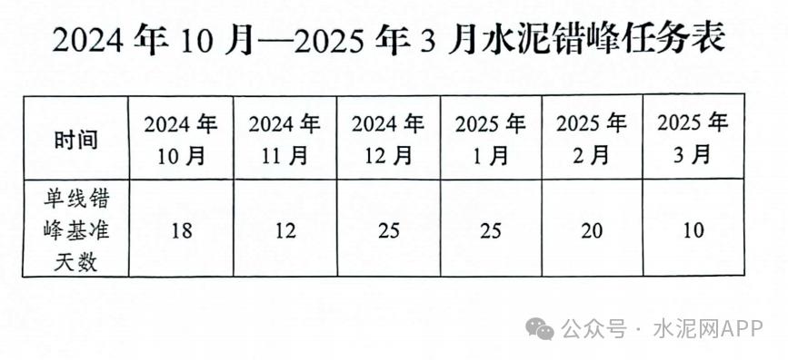錯峰范圍:重慶所有水泥熟料生產(chǎn)線。錯峰時間:2024年度單條水泥熟料生產(chǎn)線錯峰任務基數(shù)為180天、2025年度單條水泥熟料生產(chǎn)線錯峰任務基數(shù)為190天,其中2024年10月至2025年3月錯峰任務為110天。