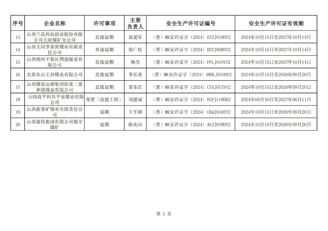 山西省應(yīng)急管理廳擬為20座煤礦頒發(fā)安全生產(chǎn)許可證