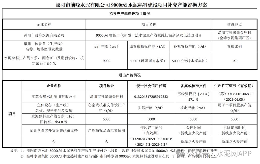 10月18日,江蘇省工信廳發(fā)布“關(guān)于溧陽市前峰水泥有限公司9000t/d水泥熟料建設(shè)項(xiàng)目補(bǔ)充產(chǎn)能置換方案的公示”。