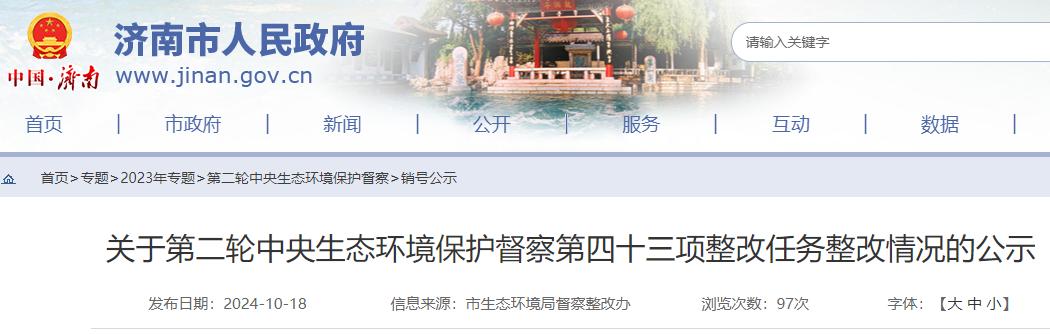 以上整改情況向社會公示,如有異議,請在公示期間向濟南市環(huán)境保護督察反饋意見整改工作領(lǐng)導(dǎo)小組辦公室反映。
