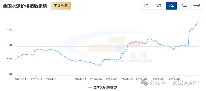 10月22日,全國水泥價格指數(shù)報收391.22點,同比漲幅達20.1%。自9月底開始,該指數(shù)呈持續(xù)上漲姿態(tài)。