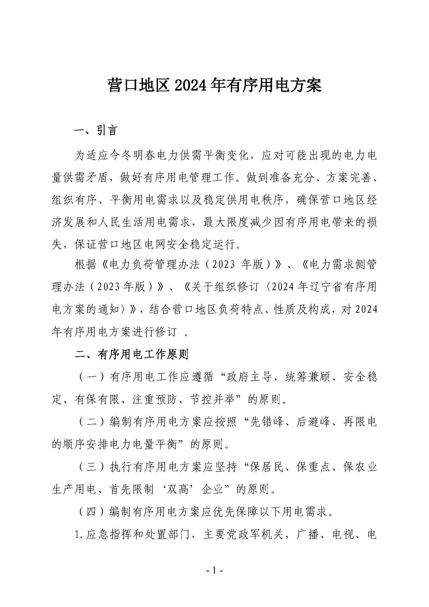 根據(jù)省工信廳《關(guān)于組織修訂〈2024年遼寧省有序用電方案的通知〉》(遼工信明電〔2024〕69號)要求,為適應(yīng)今冬明春電力供需平衡變化,確保營口地區(qū)經(jīng)濟(jì)發(fā)展和人民生活用電需求,最大限度減少因有序用電帶來的損失,保證營口地區(qū)電網(wǎng)安全穩(wěn)定運行,結(jié)合營口地區(qū)負(fù)荷特點、性質(zhì)及構(gòu)成,我局對《營口地區(qū)2024年有序用電方案》進(jìn)行了修訂。按照《營口市重大行政決策程序規(guī)定》(營政發(fā)〔2014〕4號)要求,為保障公眾的知情權(quán)和參與權(quán),確保方案的科學(xué)性、前瞻性和指導(dǎo)性,現(xiàn)公開征求相關(guān)意見建議。