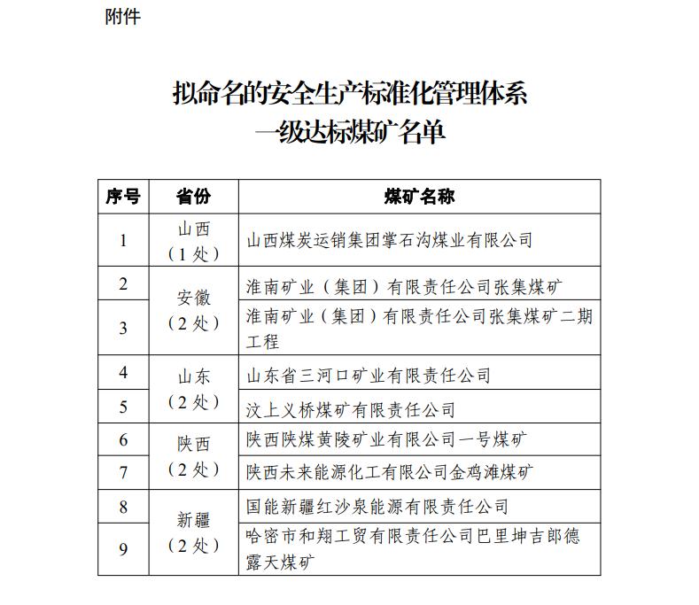 附件:擬命名的安全生產(chǎn)標(biāo)準(zhǔn)化管理體系一級達(dá)標(biāo)煤名單