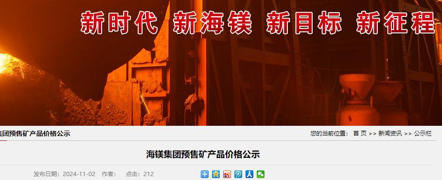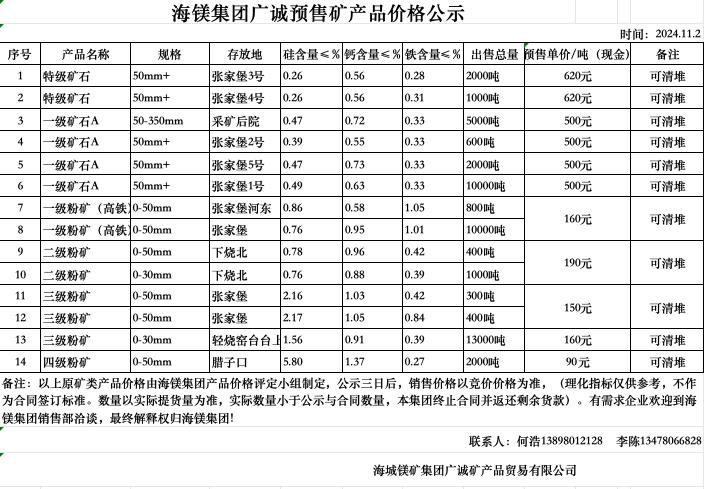 海鎂集團(tuán)廣誠預(yù)售礦產(chǎn)品價(jià)格公示