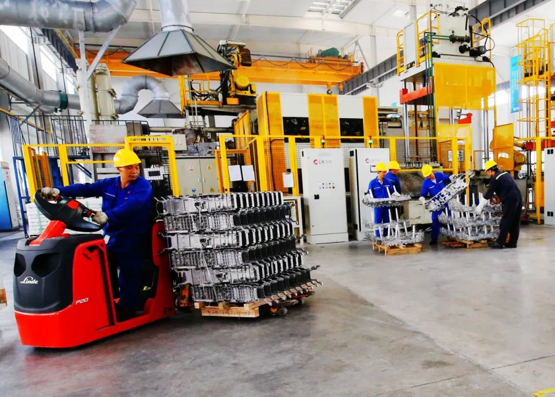 △博奧鎂鋁生產(chǎn)車間,工人將產(chǎn)品運(yùn)輸入庫(kù)。(資料圖)