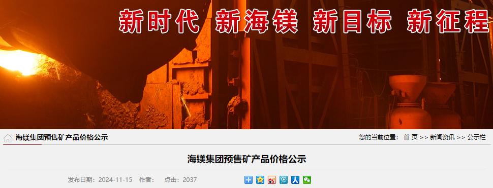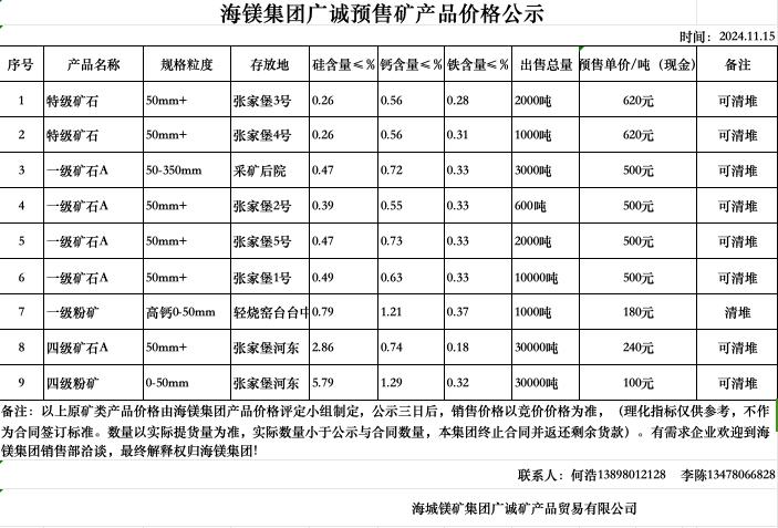 海鎂集團(tuán)廣誠公司預(yù)售礦產(chǎn)品價格公示